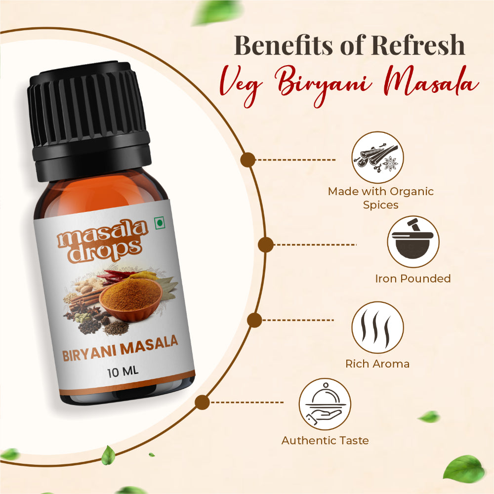- Masala Drops Biryani Masala will save your time and ease your cooking process. It is also a great savior for on-the-go and makes for a perfect gift for any one who loves the art of cooking.
