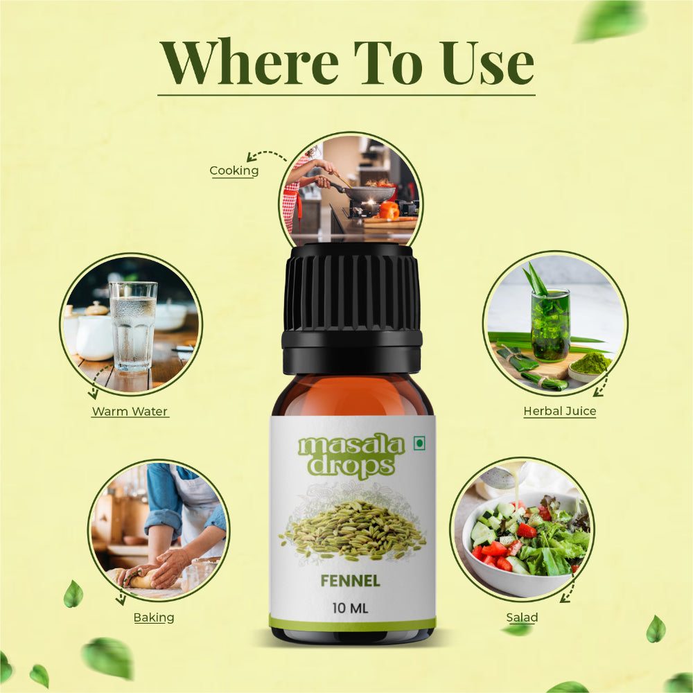 Masala Drops brings you the freshness and sweet licorice-like taste of fennel seeds in a drop. Just a drop of Masala Drops Fennel to your meal will add the desired scent to your Curries, Stews, Bread, Desserts, and Beverages.