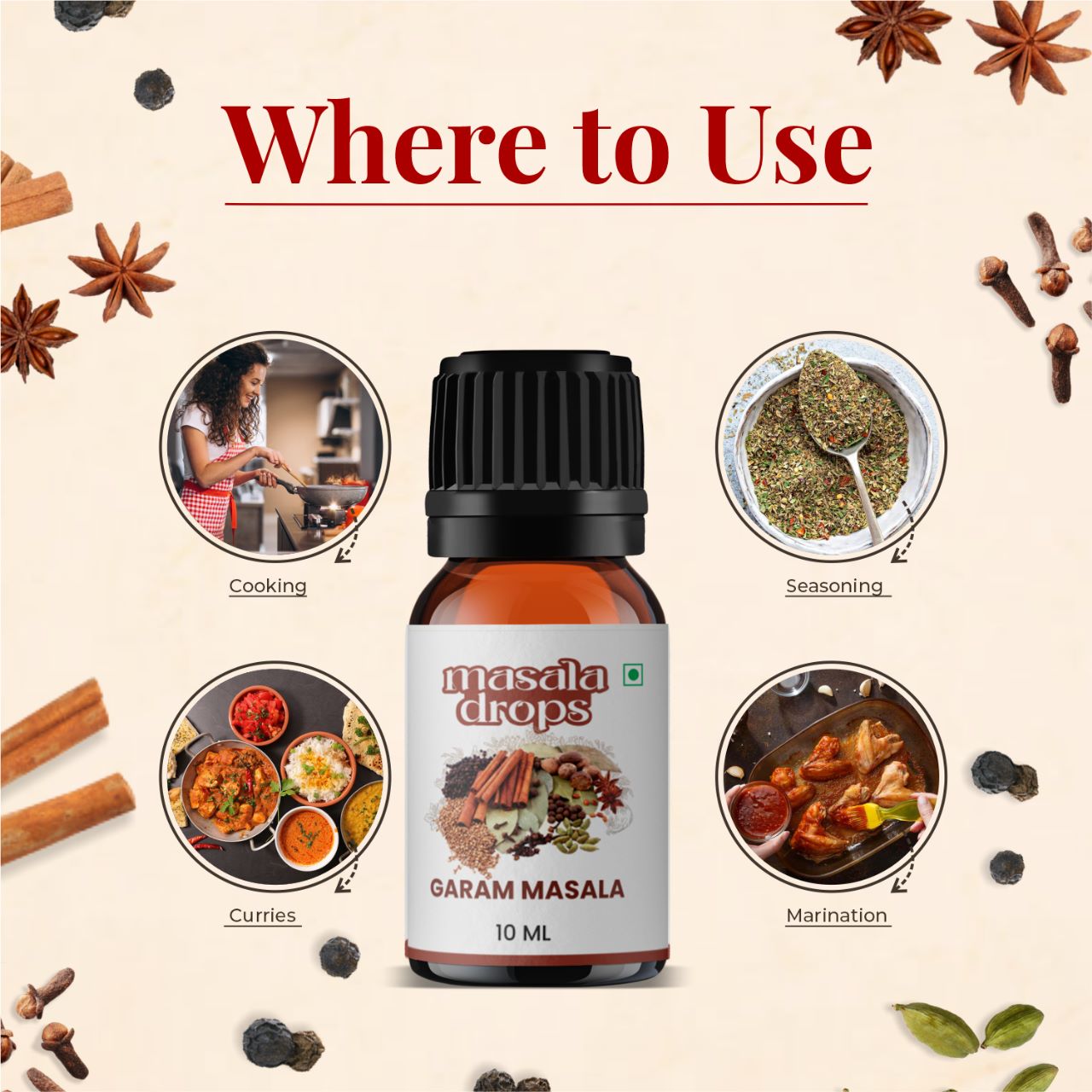 - Masala Drops Garam Masala and Biryani Masala will save your time and ease your cooking process. Use Garam masala drops for Cooking, Biryani, Curries, Gravies, Veg and Non-Veg recipes and Food flavouring.