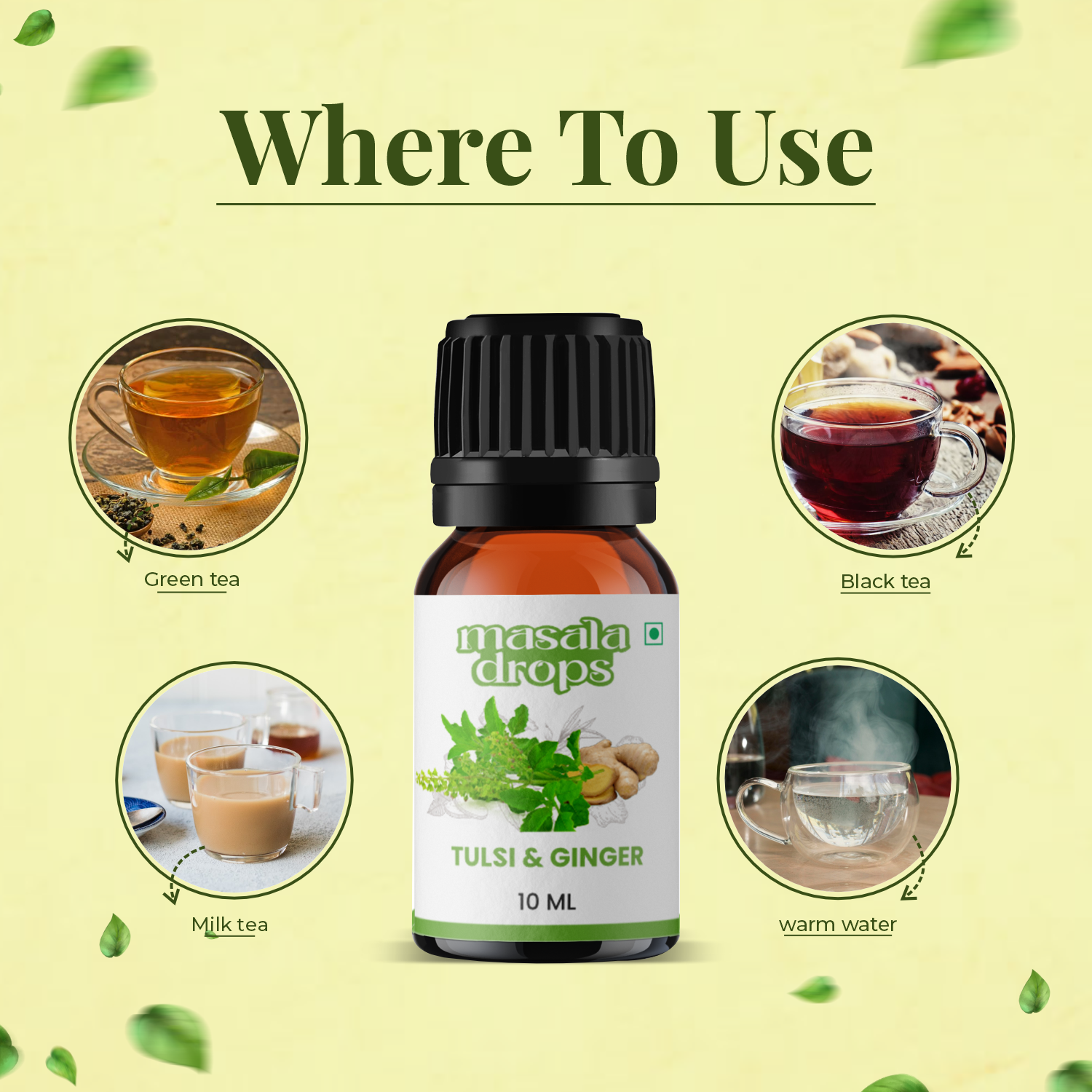 Use in Green / Black Tea Add 2-3 drops to a cup of green / black / milk tea |